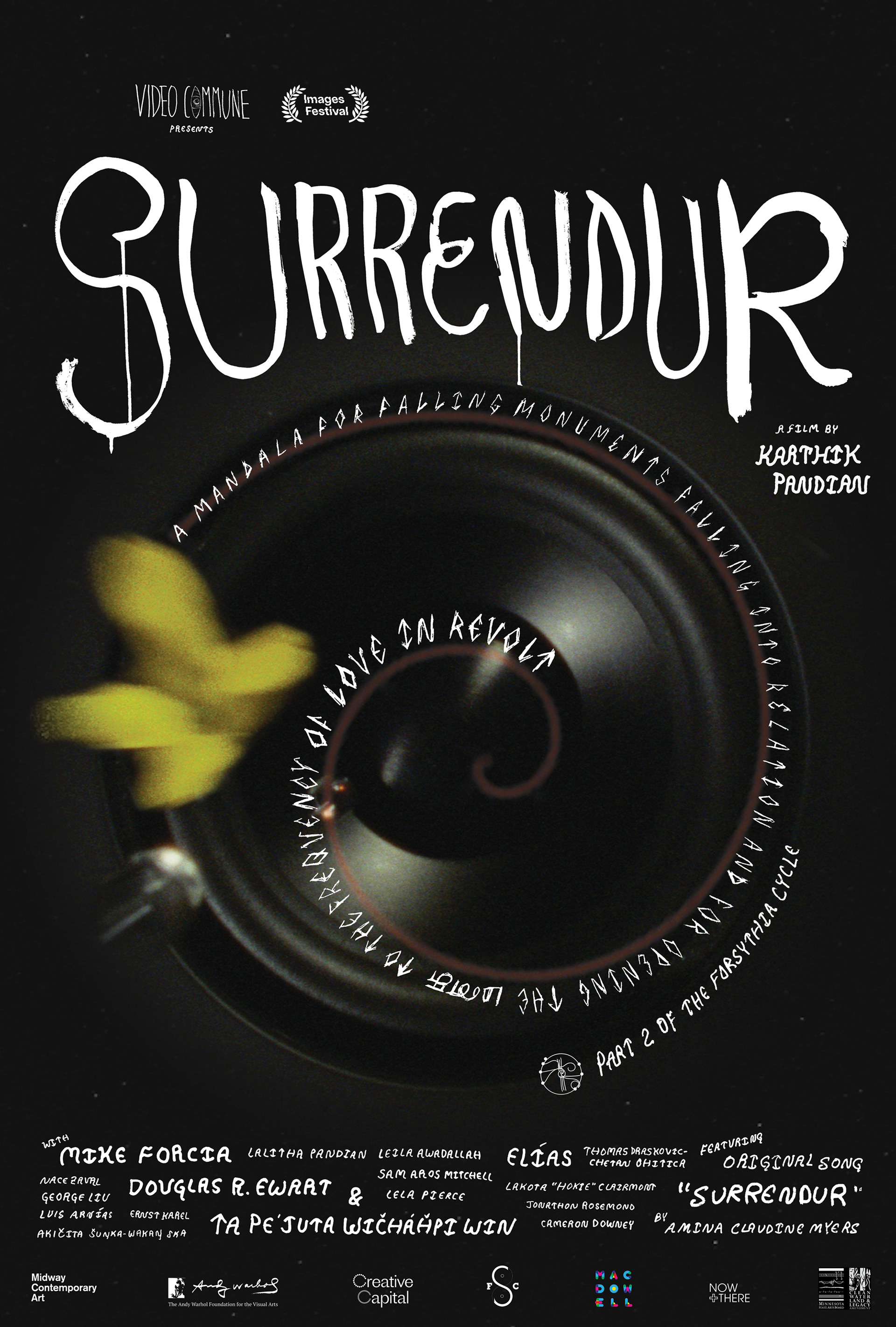 SURRENDUR transmits the stories of Mike Forcia (Bad River Anishinaabe), the American Indian Movement activist who orchestrated the toppling of a monument to Christopher Columbus, and Ta Pe'juta Wičháȟpi Win (Hunkpati Dakota Oyate), whose political consciousness was awoken when she danced around the fallen statue with her daughter. The George Floyd Uprising, Anishinaabe Seven Fires Prophecy, and the Dakota 38+2 Memorial Ride are interwoven through director Karthik Pandian’s unique style of editing nonsynchronous 16mm film and sound. Oscillating between intimate conversation and kinetic montage, SURRENDUR traces the riverine network of migration and homecoming, chance encounter and carefully cultivated collaboration that drew artist Karthik Pandian into deep relation with Forcia, Win, and other luminous activists and artists from Minneapolis,